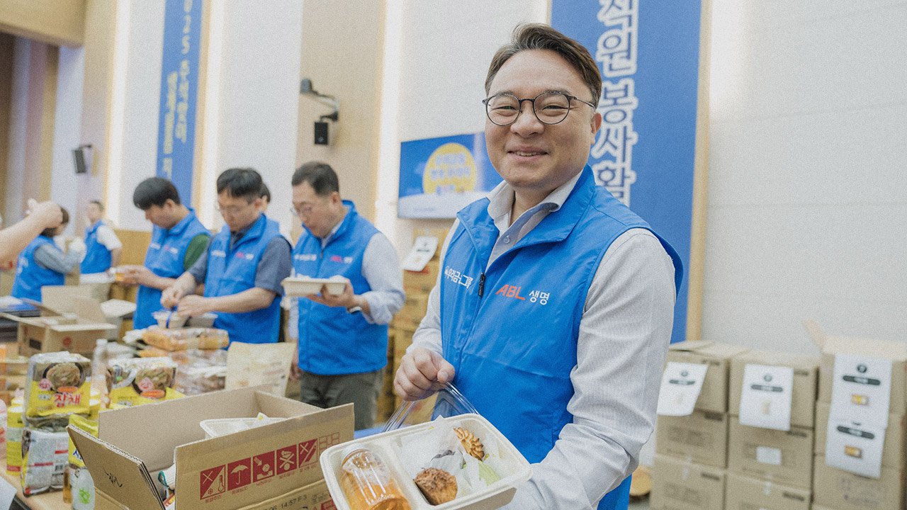 이른 아침, 서울 여의도 ABL생명 본사 강당에 활기가 넘쳤다. 스태프들이 분주하게 각종 생활용품과 식품, 상자들을 배치했다. 시간이 가까워질수록 파란색 유니폼을 입은 임직원이 하나둘 모여들었다. 이들을 응원하기 위한 푸드박스도 마련됐다. 덕분에 직원들은 삼삼오오 모여 달콤한 디저트로 출출한 속을 달래고, 음료로 목을 축이며 에너지를 충전하기도 했다.
