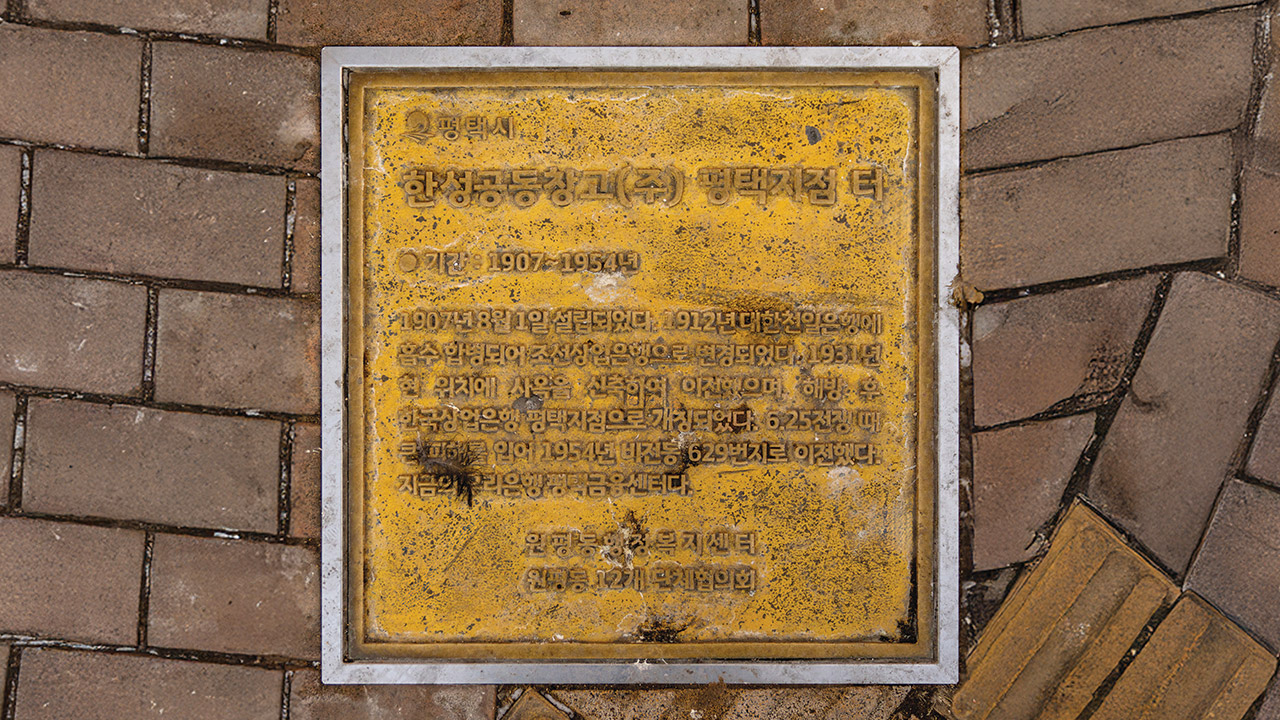 경기도 평택시 원평로 거리에는 특별한 동판이 새겨져 있다. 우리은행 평택금융센터의 옛터를 알리는 동판으로 119년의 역사를 함축해 놓았다. 1907년 8월 1일 개점한 한성공동창고는 경부선 철도 개통으로 평택이 교통의 요충지로 거듭난 당시 상인들의 자금을 보호하는 역할을 했다. 1912년 대한천일은행에 흡수 합병된 후, 조선상업은행으로 변경됐다. 해방 후 한국상업은행 평택지점으로 개칭했으며, 그 이후 6·25전쟁 때 큰 피해를 입고 1954년 비전동으로 이전했다. 바로 지금의 우리은행 평택금융센터다. 민족의 역사와 궤를 함께한 평택금융센터는 언제나 그 자리에 평택시민의 이웃처럼 자리하는 중이다.