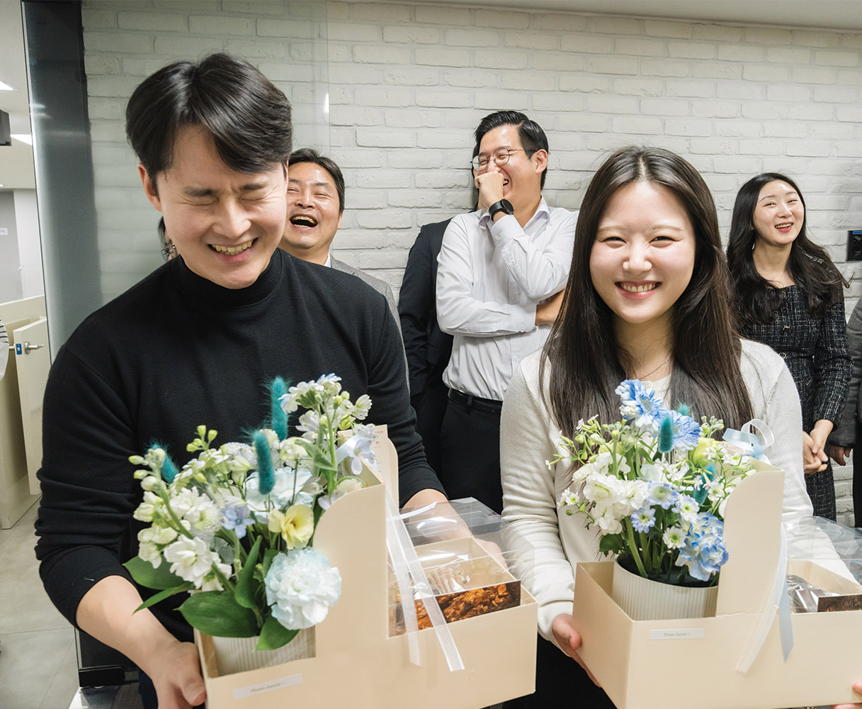 미래의 속도에 발맞춰 가장 역동적인 지점으로 거듭나겠습니다. 즐겁게 일하고 적극적으로 협업하며 또 다른 성과를 만들며 역사를 잇고자 합니다. 저 또한 직원들이 행복하게 일할 수 있도록 노력하겠습니다.