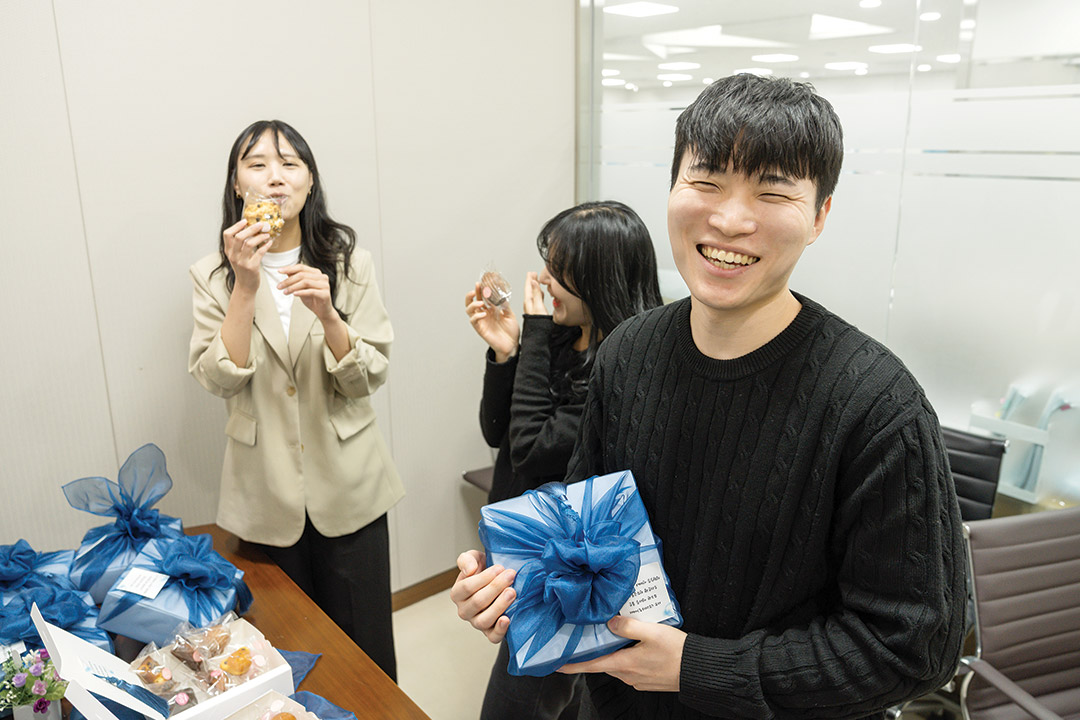전주금융센터는 총 15명이 각자의 전문성을 발휘하며 믿음직한 ‘팀플’을 이어가고 있다. 팀 안팎으로 활발하게 소통하는 것 뿐만 아니라, 문제가 발생하거나 어려운 일은 함께 해결책을 찾고 적극적으로 협업하는 문화가 자리 잡혔다. 자격증 스터디를 함께 하거나 다과를 함께 챙겨 먹으면서 단합의 밀도를 높이는 중이다. 팀의 경계를 허물고 동료의 업무 부담을 줄여주면 이는 곧 고객