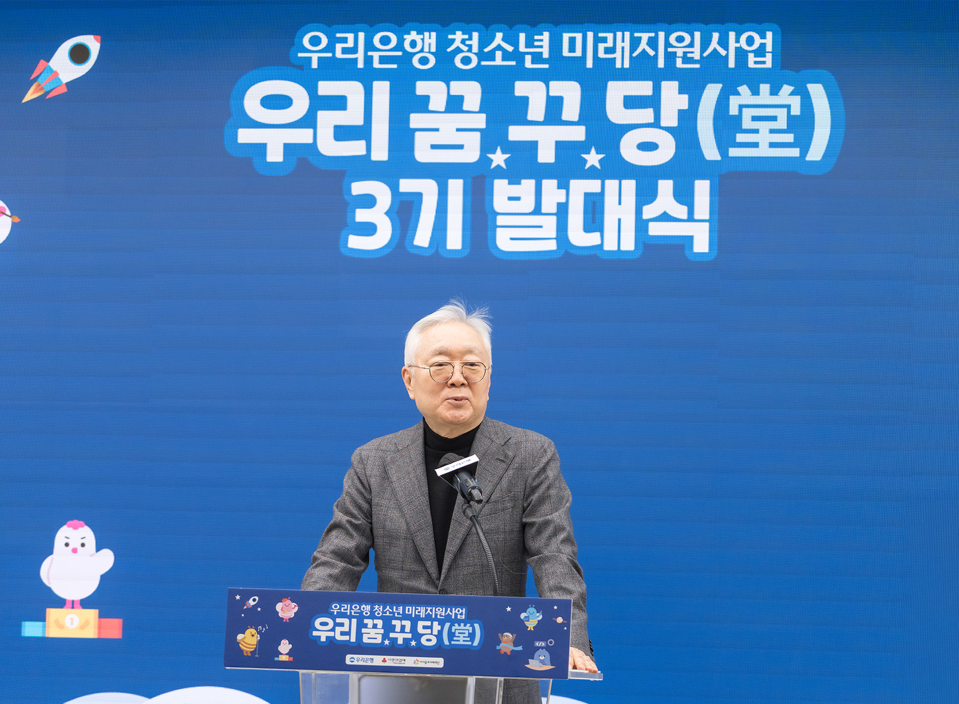발대식 현장에는 우리은행 정진완 은행장과 아이들과미래재단 이훈규 이사장 등도 참석했다. 정진완 은행장은 인사말을 통해 장학생들을 격려했다.
