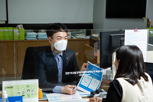 전세대출상담을 받기 위해 신정동금융센터를 찾았습니다. 번호표를 뽑고 기다리니 대출에 대한 막연함과 두려움으로 온몸이 굳고 머릿속이 새하얘졌습니다. 하지만 이정윤 계장님과 상담은 그 어느 때 은행 방문보다도 편안했습니다.