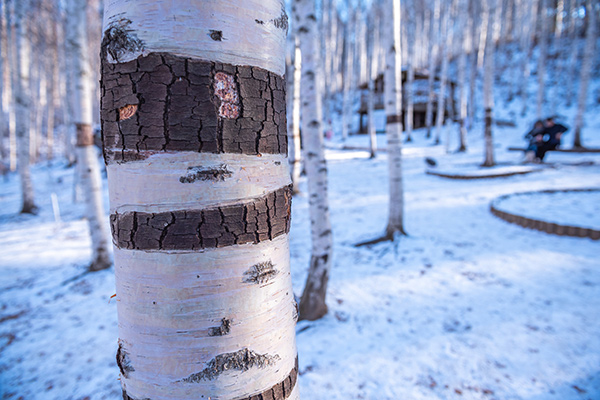 원대리 자작나무 숲은 겨울에 찾아야 제맛이라는 말이 비로소 실감이 났다. 새하얀 수피가 유난히 돋보이는 겨울철에 자작나무 실오라기 하나 걸치지 않은 자유분방한 무늬를 두르고 있었다. 셔터만 누르면 그림엽서가 되는 풍경에 연인들의 데이트 코스와 셀프 웨딩 촬영 명소로도 인기를 끌고 있다.