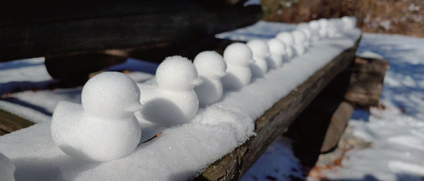 하지만 벌게진 볼과 장갑 없는 손이 무감각해질 때 쯤 정신을 차려보니 분명 흰 소가 있어야 하는 자리에 흙 묻은 눈덩어리가 하나 자리를 잡고 앉아 있다. 수습은 포기한다. 내 미술 실력은 어렸을 때부터 별로였음을 잘 알기 때문이다. 적당한 타협 끝에 옆에 있는 오리같은 형태로 ‘성형’을 해 준다. 그래도 소라고 만들었던 터라 꽤 덩치도 있고 뿔도 두개나 달려있다. 군압일우(群鴨一牛)를 머리에 그리고 시작했던 프로젝트는 결국 흙 묻은 혼종을 탄생시키고 말았다. 날이 좀 풀리면서 귀여운 오리들도, 내 건장한 흙뿔오리도 녹아 자리를 떠났지만 올 겨울은 작년에는 찾아보기 힘들었던 흰 손님이 종종 찾아오고 있다.
