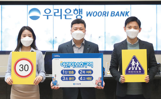 지난 2월 24일 서울 중구 우리은행 본점에서 권광석 우리은행장이 직원들과 함께 ‘어린이 교통안전 릴레이 챌린지’에 참여했다. 이번 공익 캠페인은 어린이 교통안전에 대한 공감대 형성 및 어린이 교통사고 예방을 위해 참여자가 교통안전 슬로건을 SNS에 게시하고 다음 릴레이 참여자를 지명하는 방식으로 진행된다. 권 행장은 윤종원 IBK기업은행장의 지명을 받아 이번 캠페인에 동참했으며, 교통안전 슬로건을 들고 사진을 찍어 우리은행 공식 SNS에 게시했다. 더불어 권행장은 다음 릴레이 참여자로 우리은행 대표 고객인 홍종식 금전기업 회장, 한영재 노루홀딩스 회장, 강성희 오텍그룹 회장을 지명했다.