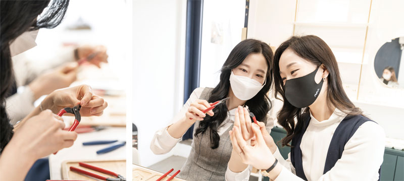 성다은 계장은 커스텀 주얼리를 체험해 볼 수 있다는 정보를 접하자마자 김민희 계장을 가장 먼저 떠올렸다. 그 또한 주얼리를 좋아한다는 것을 누구보다 잘 알기 때문이었다. 물론, 김민희 계장도 기꺼운 마음으로 응했다.
