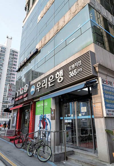 토평지점이 위치한 건물 안내판을 보면 1, 2, 3층에 모두 ‘우리은행’ 이라고 안내돼 있다. 1층에는 자동화기기 코너가, 2층에는 예금팀과 투체어스팀, 3층에는 종상팀이 자리한다. 리모델링 이전에는 각 층에 가려면 외부 계단과 엘리베이터를 이용해야 했다. 같은 지점이지만 층이 나뉘어 객장이 분리됐던 상황. 지점 직원은 물론이고 고객들은 더더욱 업무 진행에 불편함을 느꼈던 상황이라 이를 개선하기 위해 2, 3층은 내부에서 층을 오갈 수 있는 계단을 만든 것이다.