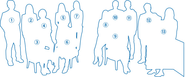 1. 박세민 매니저 2. 정경주 대리 3. 안경선 계장 4. 김윤경 차장 5. 서문숙 과장 6. 배연수 지점장 7. 조은희 과장 8. 구혜은 대리 9. 임유순 부지점장 10. 김학식 차장 11. 이동훈 대리 12. 박찬규 부지점장 13. 문지영 계장