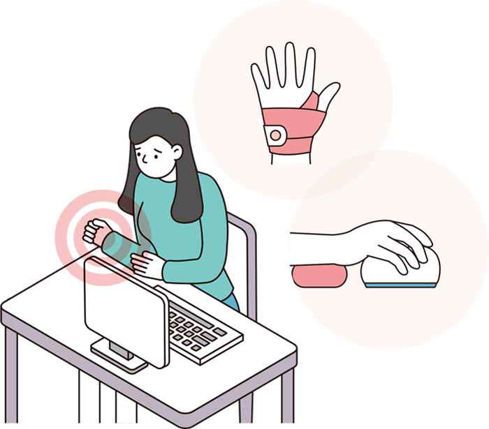 경견완증후군은 온종일 컴퓨터 자판을 치는 것처럼 상체를 이용해 반복된 작업 을 지속하면 나타나는 증상으로, 오십견, 테니스·골퍼 엘보, 손목터널증후군, 근막통증증후군 등 10여 가지 질환이 포함된다.
