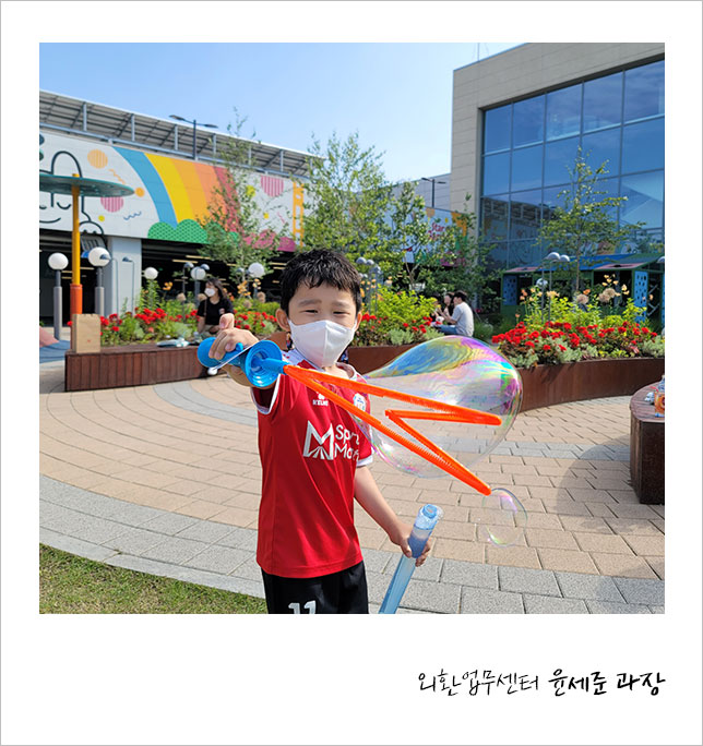 아이와 자주 노는 거 같아요. 주말에는 아이와 함께 가까운 공원으로 비눗방울 놀이를 하러 가거나, 차박 캠핑을 가서 맛있는 고기를 구워먹고, 잔디밭에서 축구놀이를 하고 돌아오곤 합니다. 여름은 특히나 놀기 좋은 계절인데, 최대한 자제해야하는 게 너무 안타깝네요.
