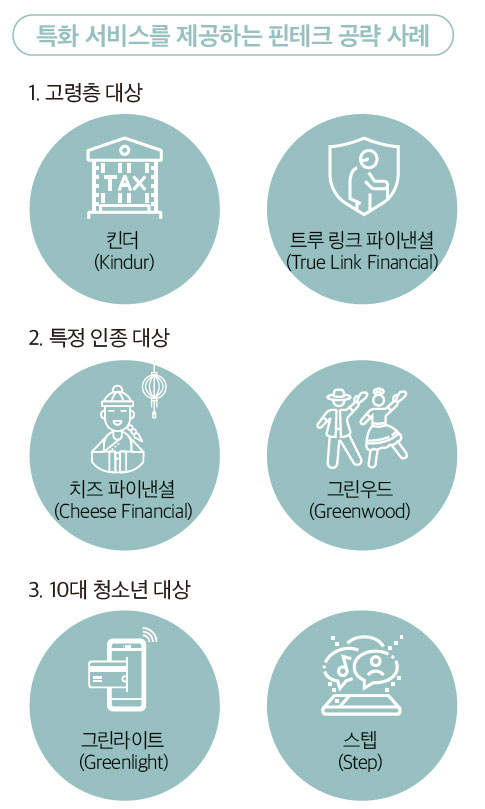 디지털화에 따른 금융포용 개선 노력에도 불구하고 고령층과 외국인 등 특정 계층은 금융 서비스에서 오히려 소외되는 현상이 늘고 있다. 비대면 채널이 늘어나면서 디지털 역량이 부족한 고령층은 원활한 금융 서비스 이용에 제약을 받고 있으며, 스마트폰 보급률이 높은 10대 청소년은 금융 서비스 가입연령 제한으로 디지털 경제 접근성이 제한된다. 한편, 2019년 기준 미국 내 흑인 가구의 13.8%가 은행 계좌를 보유하지 않는 등 특정 인종의 금융 소외 문제도 지속되고 있다. 이 같은 상황에서 금융 소외 계층을 주요 고객으로 인식하고 디지털 기반의 특화 서비스를 제공하는 핀테크가 늘고 있어 관련 사례를 조사했다.