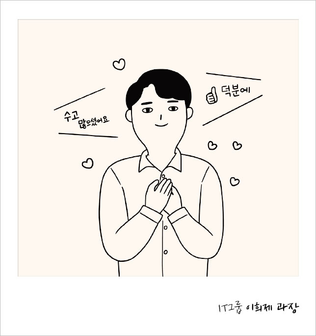 그럴 때 갑자기 “수고 많으셨어요”, “덕분에 걱정을 덜었습니다”와 같은 말을 들으면, 정신이 번쩍하며 다시 ‘사람’ 모드로 돌아가게 됩니다. 이런 ‘사람의 언어’는 듣는 사람뿐만 아니라 말하는 사람에게도 온기를 불어넣어 주는 것 같아요. 오늘부터 상대방을 위한, 나 자신을 위한, 더 나아가서 우리 사회를 위한 한마디를 덧붙이면 어떨까요?