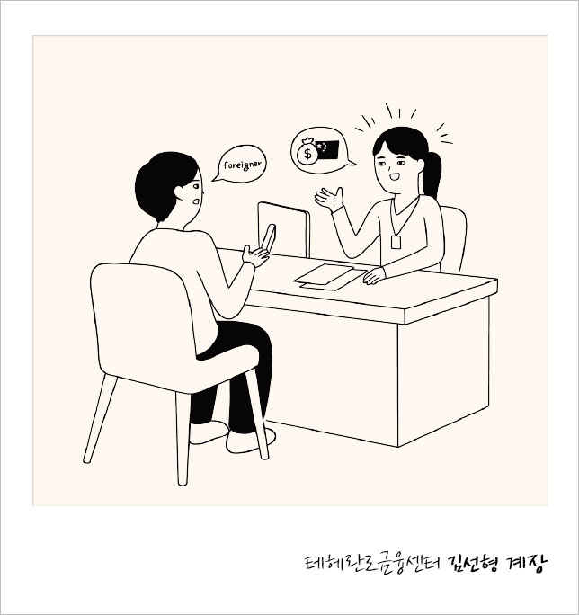 어느 날 중국인 고객이 IRP로 퇴직금을 수령할 예정이어서 방문해 주셨어요. 수령 즈음에는 중국에 체류할 거고, 인터넷·스마트뱅킹 상에서 IRP를 해지할 수 있는지, 디지털OTP 사용이 가능한지, 중국 내 우리은행에서도 국내 계좌의 은행업무가 가능한지 등을 문의하셨습니다. 서툰 한국어로 문의하시는 모습을 보며 제가 외국인이었어도 퇴직금을 본국에서 수령하는 건 어려울 것 같다는 생각이 들었습니다. 그리고 다짐했어요. 외국인 고객과 의사소통이 원활하지 않아 답답한 마음이 들더라도 고객의 입장에서 더 친절하게 응대해 드리기로요.^^