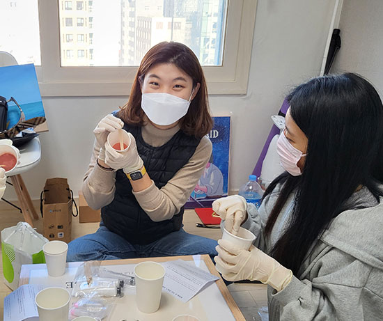 시기에 맞게 딱 필요했던 손비누 만들 기회가 저에게 오다니! 너무 좋았어요. 만드는 동안 동기들과 도란도란 좋은 시간 보낼 수 있었습니당! 양도 넉넉해서 주변에 나눠주는 여유로움까지 뽐낼 수 있는 정말 즐거운 경험이었어요. <우리가족> 고마워용 >.<