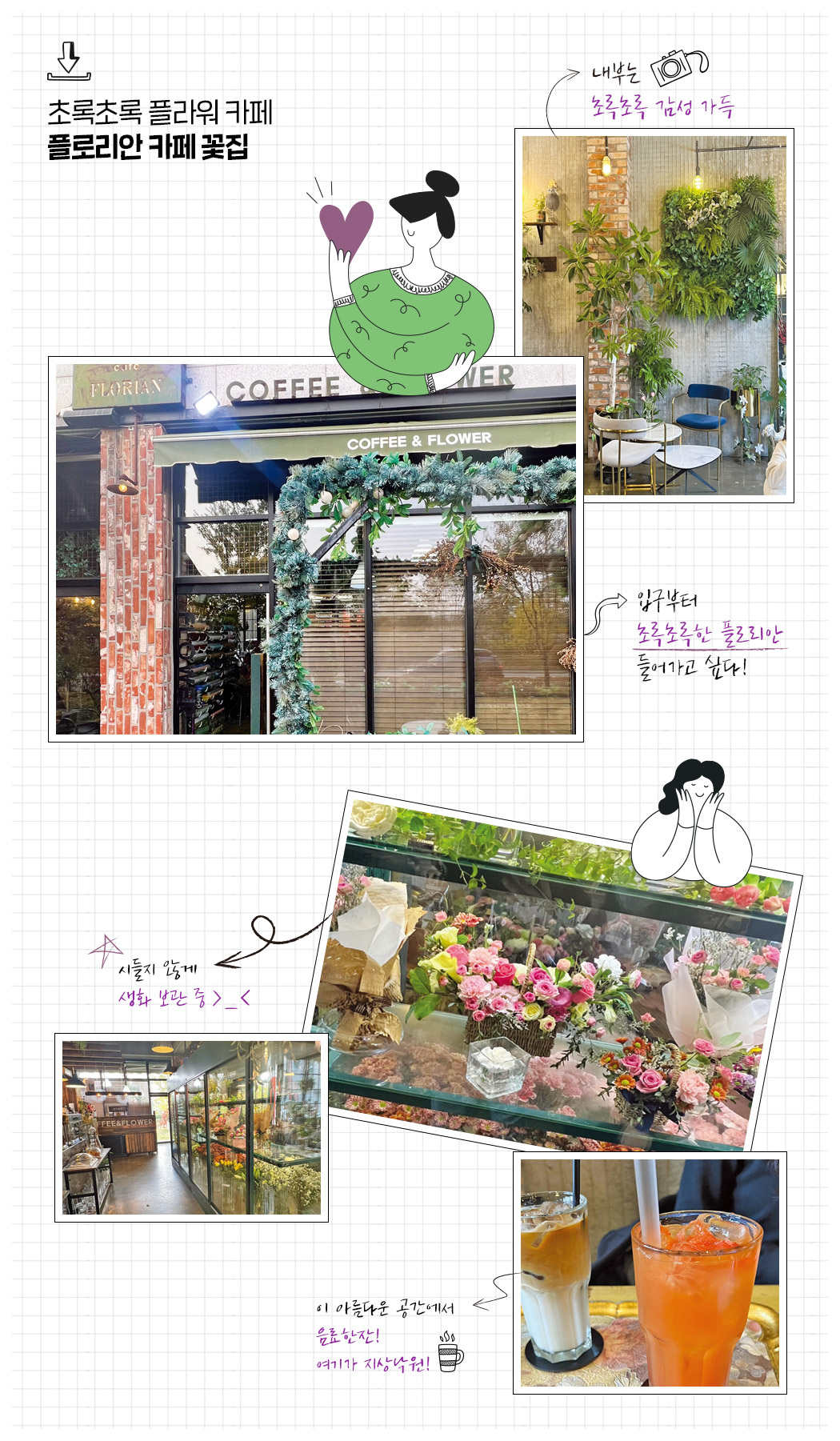 푸릇하고 꽃으로 가득한 공간에서 커피를 한잔하고 있자니, 문득 엄마를 모시고 오면 참 좋아하시겠다는 생각이 든다. 함께 와서 꽃도 한 다발 사드려야겠다는 생각을 하며 다음 방문을 기약해본다!