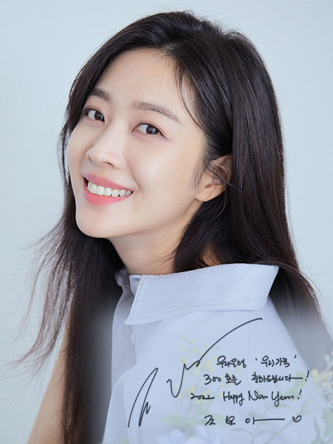 “안녕하세요! 배우 조보아입니다. 우리은행 행내보 <우리가족> 300호를 축하드립니다. 새해 첫 달, 300호를 맞이한 만큼 우리가 족 여러분들에게 좋은 일만 있을 것 같네요. 2022년, Happy New year~!”