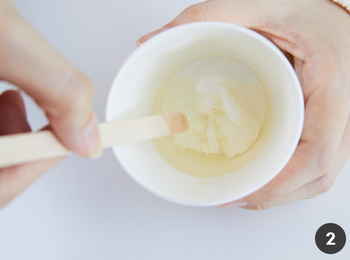 알갱이가 남김없이 다 녹았는지 확인하고 우드스틱으로 골고루 섞일 수 있게 저어주세요. 종이컵 내용물이 모두 녹았으면 향료를 넣고 다시 우드스틱으로 잘 저어주세요!