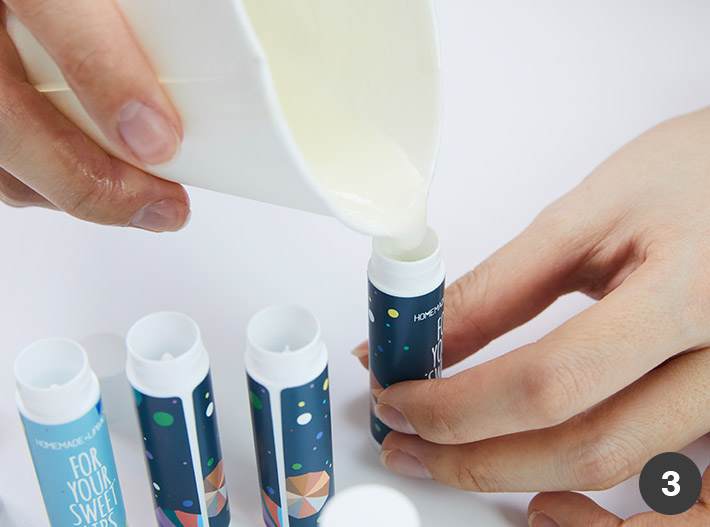 립밤 용기 끝까지 내용물을 붓고 굳을 때까지 여유롭게 기다려주세요!