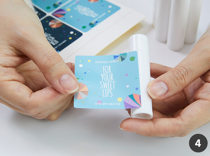 용기 뚜껑을 닫고 준비된 스티커를 용기 위아래 사이즈에 맞게 잘 붙여주세요! 완성~!