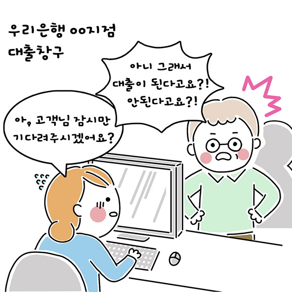 오늘도 정신없이 바쁜 대출창구의 하루. 언성 높이는 고객님들과 길게 대기 중인 고객님들을 보면 마음이 조급하다.