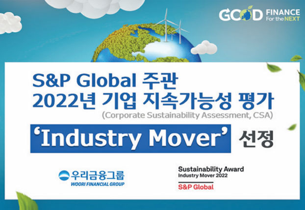 우리금융그룹은 세계 3대 신용평가사 중 하나인 S&P Global이 발표한 2022년 기업 지속가능성 평가에서 국내 금융그룹으로는 유일하게 ‘인더스트리 무버(Industry Mover)’에 선정됐다고 지난 2월 4일 밝혔다.