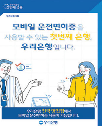 우리은행은 금융권 최초로 모바일 운전면허증을 활용해 지점 등에서 대면으로 실명확인을 수행할 수 있는 서비스를 행정안전부-한국조폐공사와 동반 구축해 시행한다고 지난 1월 28일 밝혔다.