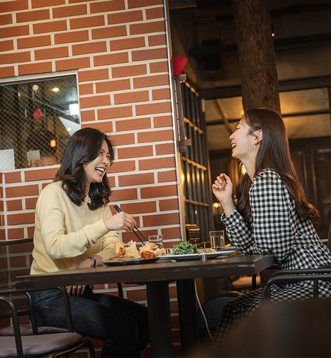 얼마 후 주문한 음식이 나오기 시작했다. “얼른 찍어야지!” “응 언니가 찍어봐. 나도 태그해줘.” 맛있는 음식을 앞에 두고 인증샷 찍기에 바쁜 두 사람. 그 모습을 보니 영락없는 또래 친구들 같다.