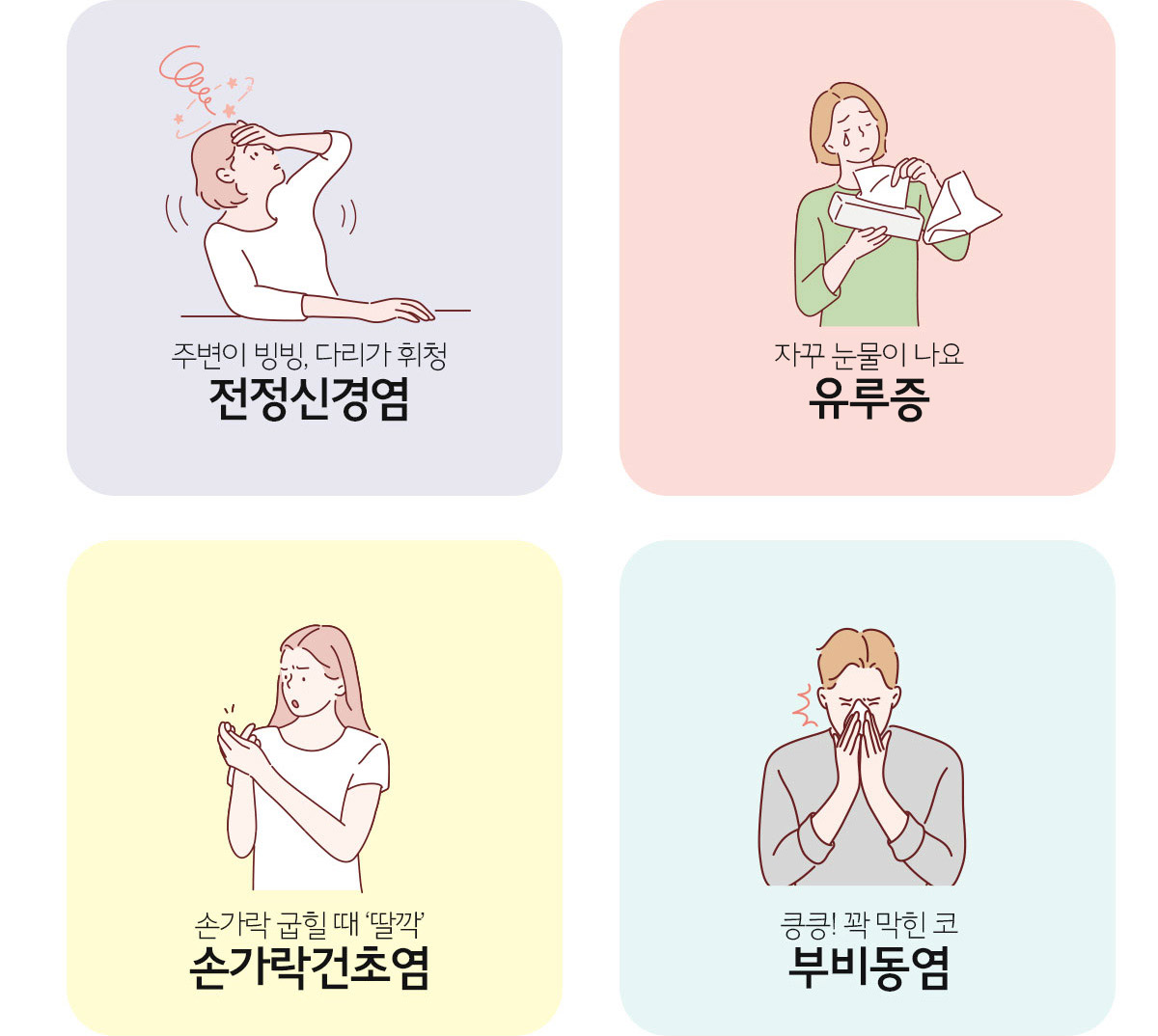기온이 떨어지면 감기에 걸리기 쉬운데 이때 축농증으로 알려진 부비동염을 주의해야 한다. 꽉 막힌 코, 풀어도 계속 나오는 콧물, 특히 코가래가 항상 목 뒤에 걸려 있어서 조용한 순간에도 킁킁거리며 코를 들이마시게 되는데 그때마다 남들의 시선을 신경 쓸 수밖에 없는 남모를 아픔이 있다. 부비동염은 코 주위의 얼굴뼈 속에 존재하는 빈 공간인 부비동의 입구가 막혀 분비물의 배설이 원활하지 못하여 염증이 생기고 농이 고이는 질환이다. 흔히 감기의 합병증으로 나타난다.