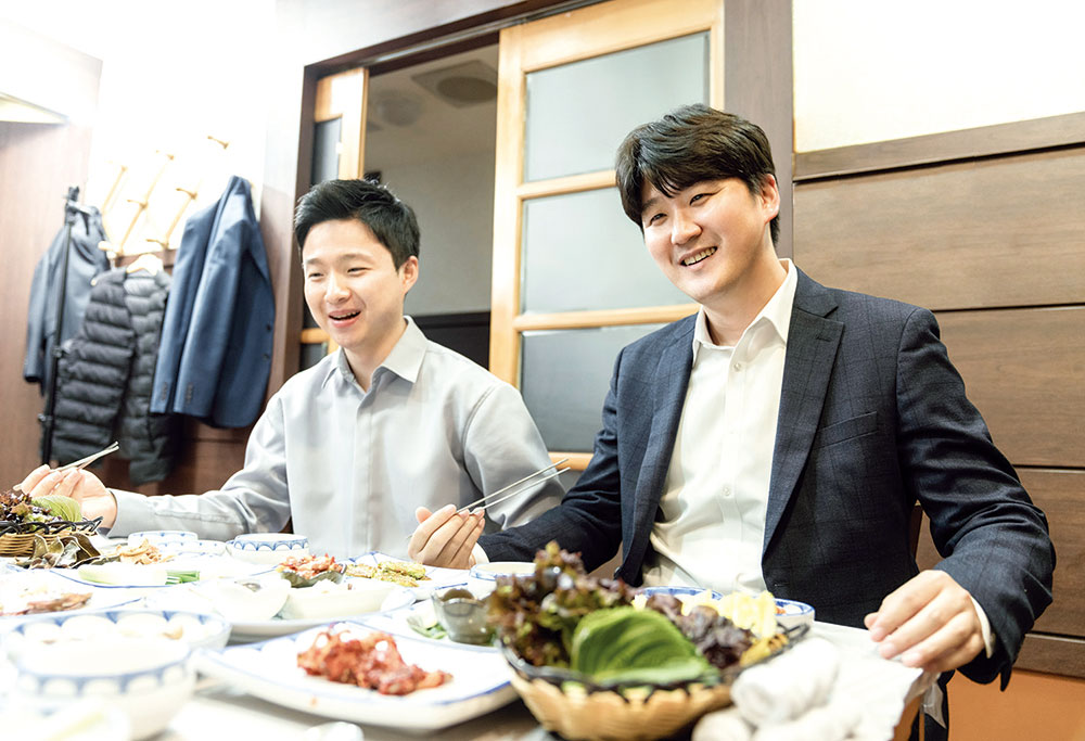 “작년에 만나고 못 만났던 것 같아요. ‘만나야지, 만나야지’ 생각했는데 여러 가지 상황으로 만나질 못했어요. 우연히 사보 코너를 보고 신청했는데, 된 걸 보고 ‘드디어 만나겠구나!’ 싶더라고요. 후배들도 좋아해서 이번 식사자리가 성사되었습니다. 행운이죠.” 채인수 지점장은 후배들과 함께할 수 있어 마냥 기쁘다며 한껏 웃어 보였다.