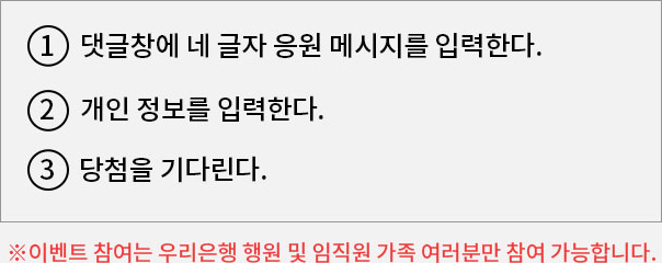나른하고 더워지는 날씨! 이럴수록 우리가족도 응원이 필요합니다. 네 글자로 응원 메시지를 보내주세요. 기준은 없습니다. 의미도 있고, 재밌으면 당첨! 단, 네 글자로 보내주셔야 해요!