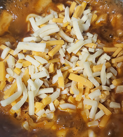 유명한 애플떡볶이 처음 먹어봤어요. 캠핑 가서 먹으려다가 집에서 부모님과 함께 먹었는데 너무 맛있더라고요. 즉석 떡볶이 먹는 것처럼 끓이면서 먹으면 더 맛있을 것 같아요. 저는 치즈를 좋아해서 치즈도 넣었는데, 더 맛있더라고요. 애플떡볶이 짱♡