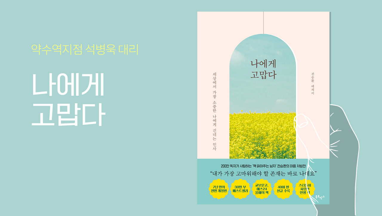 소중한 시간을 내어 듣고 계실 분들을 위해 저 석병욱은 전승환 작가의 에세이인 <나에게 고맙다>라는 책을 선사해볼까 합니다.