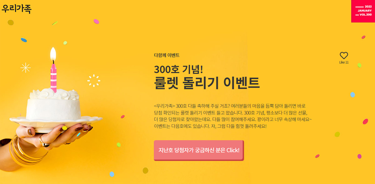 * 보다 자세한 우리 사보의 역사를 알고 싶은 분들은, 과월호 콘텐츠 ‘전지적 사보 시점’을 다시 한 번 읽어보면 좋을 것 같습니다! GO지난 2021년, 인쇄보 시대에 종언을 고하고 전면적인 디지털 웹진으로 그 발간형태를 변경한 <우리가족>은, 이어 2022년 7월 개편의 방점을 찍고자 한다. 기존의 우리은행 ‘행내보’ 형태에서 나아가, 구독층을 全 그룹으로 확대하여 우리금융그룹의 모든 직원들이 함께할 수 있는 사보로 탈바꿈하는 것이 그것이다. 향후에는 금융그룹의 모든 구성원들이 좀 더 편하게 접근하여 내용을 살필 수 있고, 관심 있는 분야에 참여하면서 서로 소통해가는 과정을 누적해 나갈 예정이다. 이를 통해 全 그룹의 구성원들이 자연스럽게 수평적 소통과 의견 교류의 장을 마련해 함께 만드는 기업문화를 확립하는 게 궁극적인 목적이라고 할 수 있다.