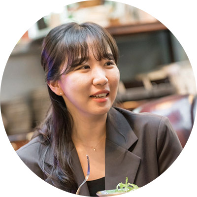 음식을 기다리는 동안 그간 메신저로만 나눴던 이야기를 한아름 풀어놓는다. “요즘 저는 테니스, 채린이는 골프에 빠져있거든요. 저희 둘 다 시작한 지 얼마 되지 않은 운동이라 대부분 서로의 진도를 체크하며 이야기를 시작하는 것 같아요. 물론 운동 이야기로 시작해 회사 이야기로 마무리 하는 게 특징이죠. 하하.” 이다슬 계장의 말에 동의한다는 듯 배채린 계장도 고개를 끄덕인다.