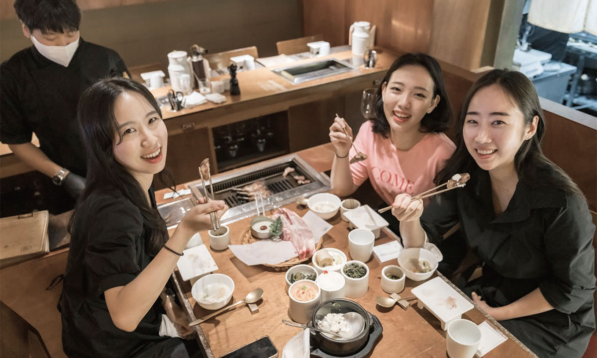 맛있게 구워진 고기 한 점이 각자의 접시에 놓이자 세 사람의 젓가락이 바빠진다. “너무 맛있다!”, “맛있어! 오길 잘한 것 같아!”, “여기 대박인데?!” 각자 한마디씩 시식 평을 하며 고기를 즐긴다.