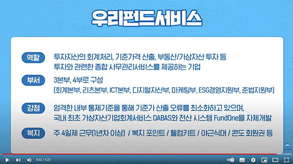 투자자산의 회계처리, 기준가격 산출, 부동산/가상자산투자 등 투자와 관련한 종합 사무관리서비스를 제공하는 기업