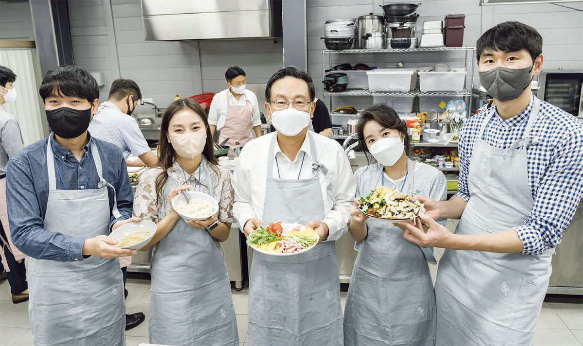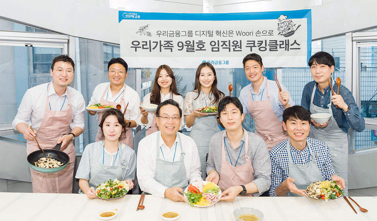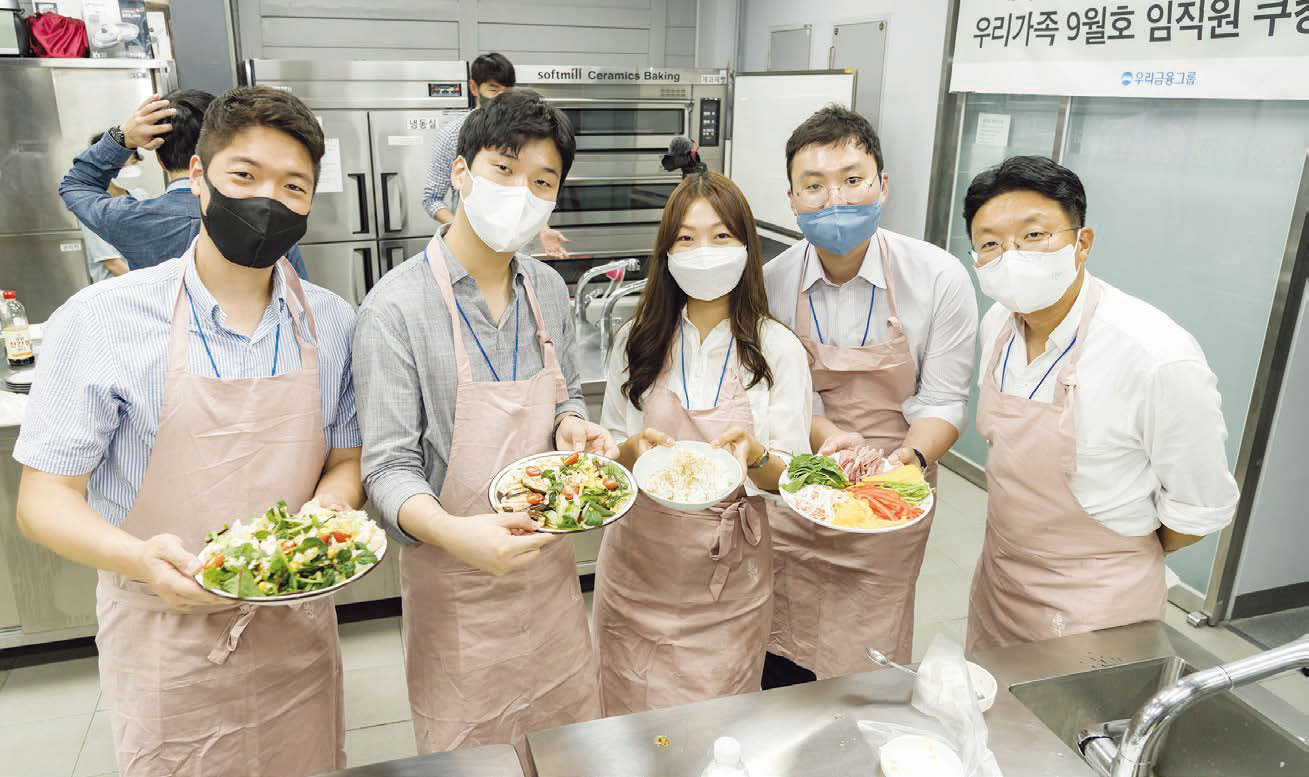 이런저런 이야기를 나누다 보니 해가 저물고, 쿠킹클래스를 마무리할 시간. 손태승 회장은 “우리 직원들, 가족들 늘 행복했으면 좋겠어요. 그래야 저도 행복하고, 우리금융그룹도 행복하니까요”라며 덕담을 건넸다. 직원들도 “그럼요. 회장님도, 우리도 모두 행복해져요!”라며 잔을 기울이고 소중한 시간을 마무리했다.
