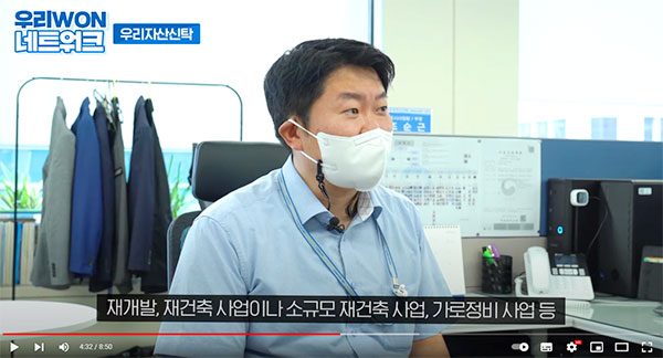 재개발, 재건축 사업이나 소규모 재건축 사업, 가로정비사업 등 정비사업 과정에서 자금조달이 원활하지 않거나 사업이 신속하게 진행되지 않는 경우가 발생한다. 그때 조합원이 우리자산신탁에 토지를 위탁하면, 조합을 대신해서 조합에 필요한 자금을 조달하거나 공사부터 설계, 행정, 용역 등의 발주 및 관리를 수행한다.