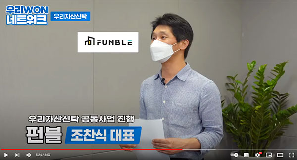 펀블은 우리자산신탁과 공동사업을 진행하고 있다. 재미있게 우량자산에 투자할 수 있는 플랫폼 회사이다. 예를 들어 일반인들은 잠실롯데월드타워를 소유할 수 없는데, 우리자산신탁은 대형 우량자산을 작게 분할해 증권을 발행해 준다. 펀블은 증권을 부동산 조각 투자할 수 있는 개념으로 만들어 일반인들(개인 투자자)이 소액으로도 우량자산에 투자할 수 있도록 한다. 또한, 그 지분을 소유할 수 있고 빌딩도 가질 수 있도록 창구로서의 역할을 하고 있다.