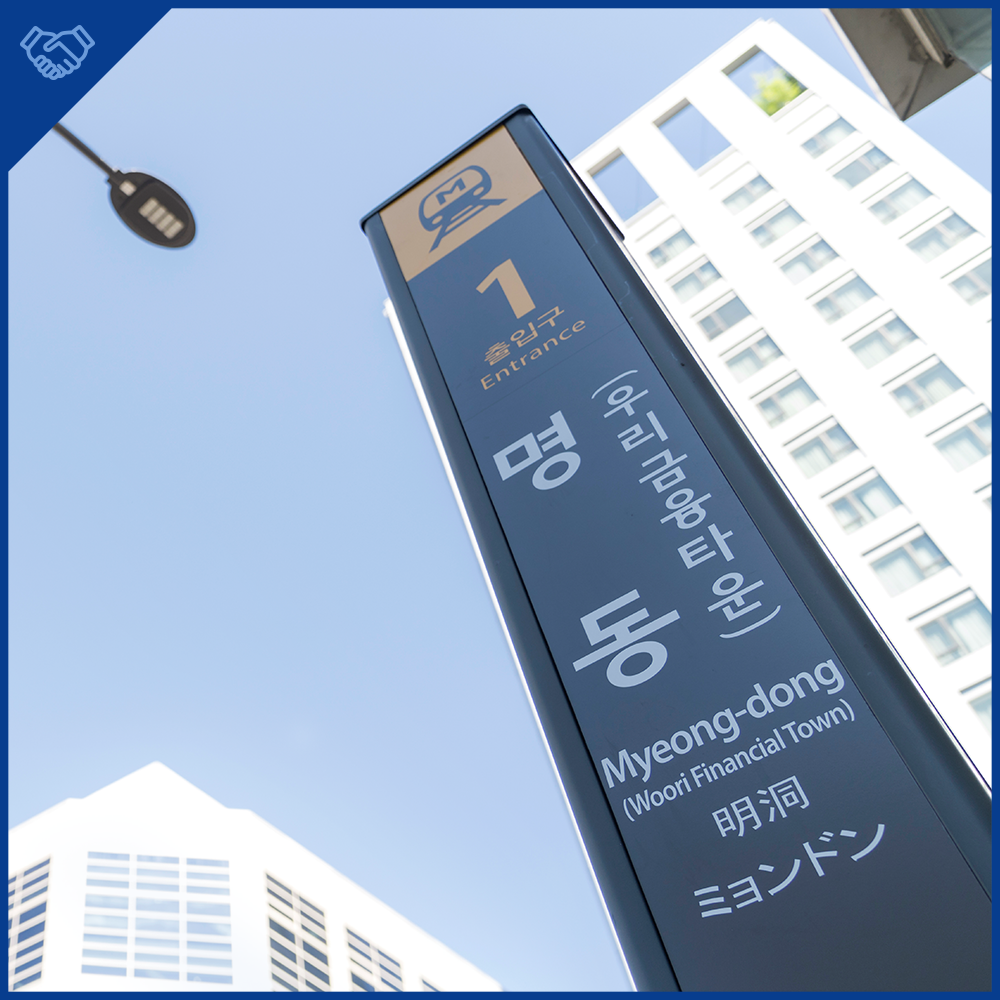 이제 안내표지와 차량 안내 방송에서도 만나볼 수 있는 명동역과 우리금융타운역. 함께 이름을 나란히 하게 된 만큼 앞으로도 우리는 명동역 인근의 모두와 함께 성장할 수 있도록 노력할 것이다.