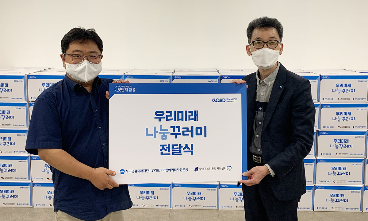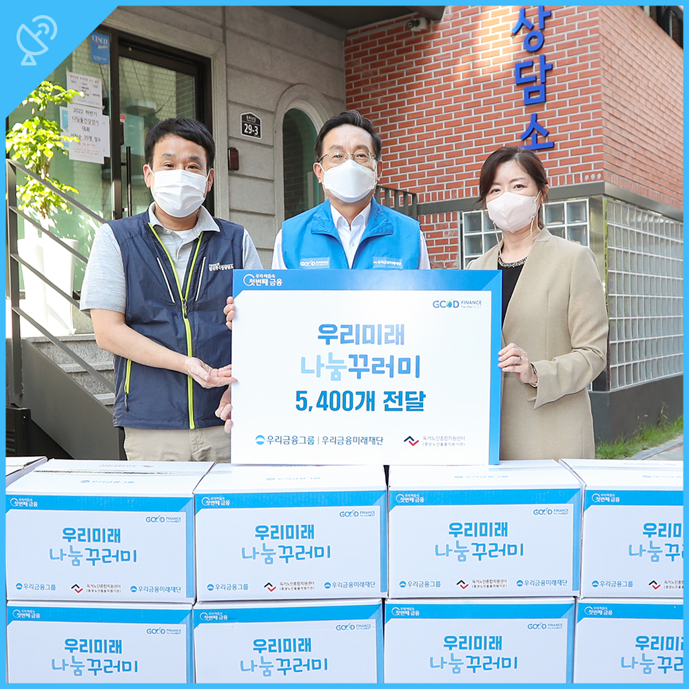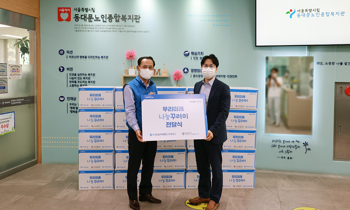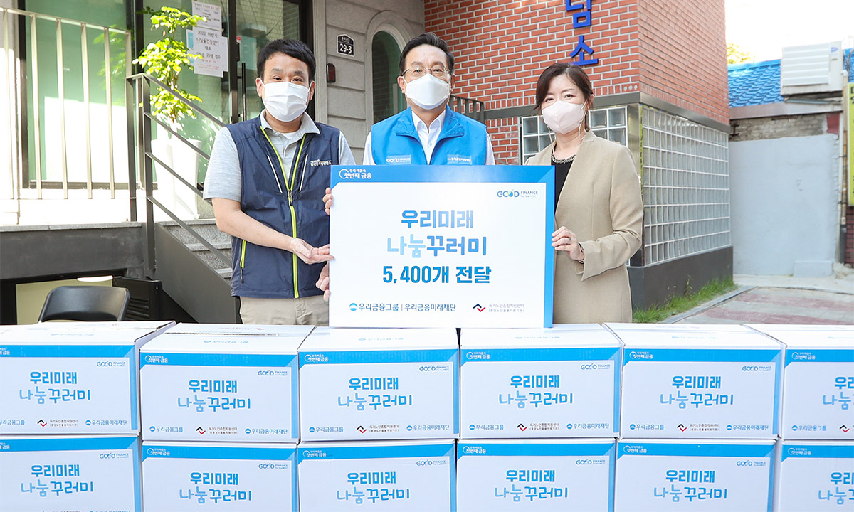 지난 9월 7일, 서울 종로구 소재 창신동 쪽방 상담소에 우리금융미래재단이 모였다. ‘우리미래 나눔꾸러미 전달식’을 위해서다. 평소 가족, 이웃 등 사회적 교류가 원활하지 않은 취약계층에게 우리금융그룹 전 직원의 마음을 전하고자 마련된 이번 전달식에는 우리금융미래재단 손태승 이사장과 독거노인종합지원센터 김현미 센터장 등이 참석해 자리를 빛냈다.