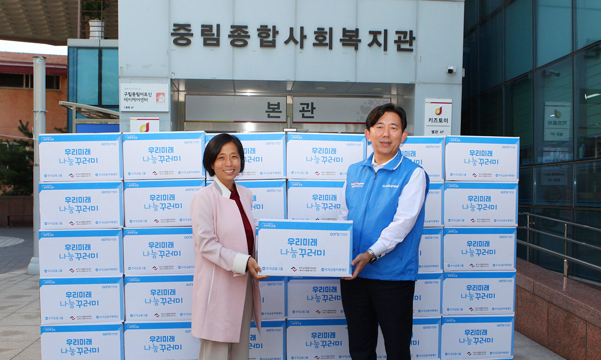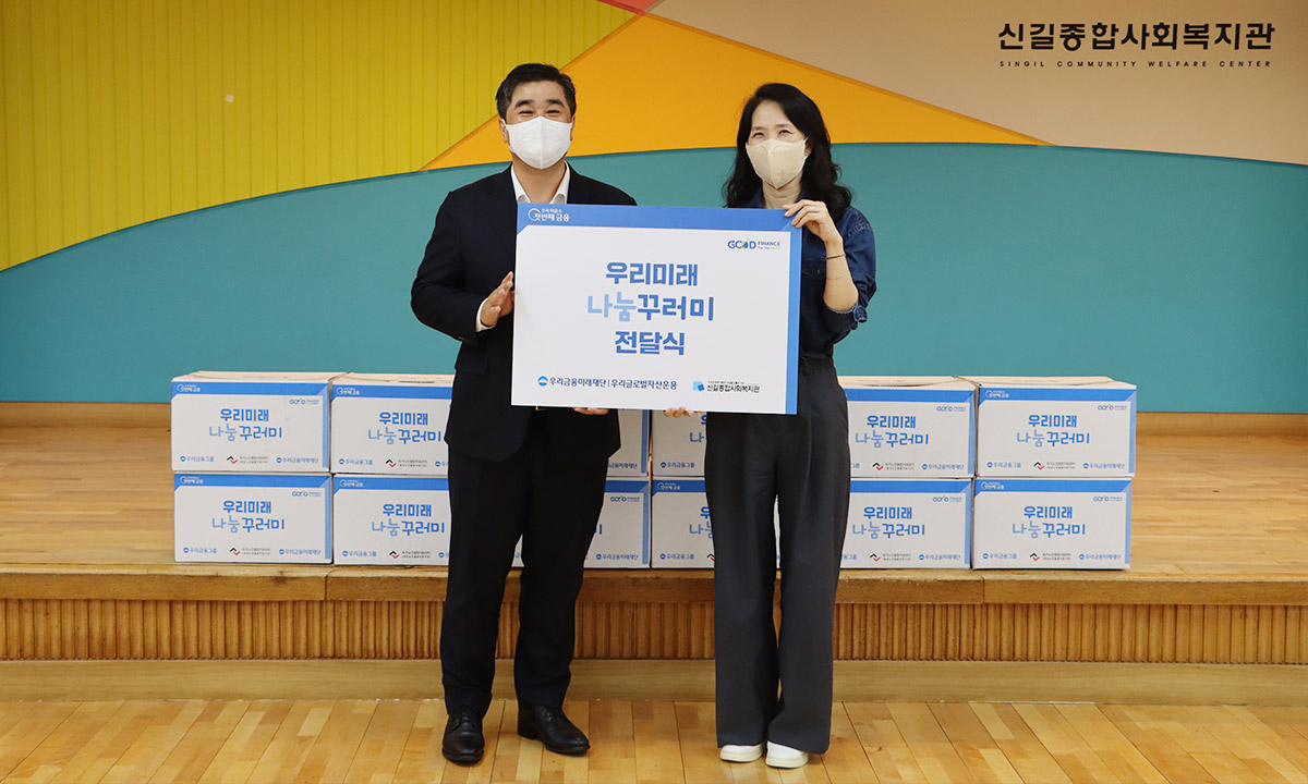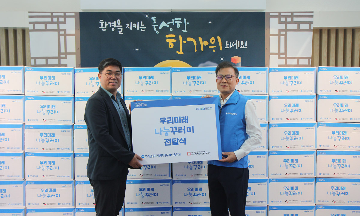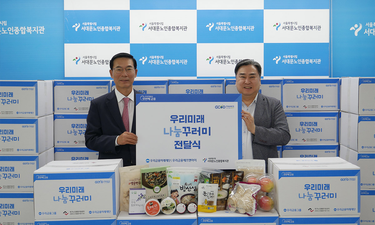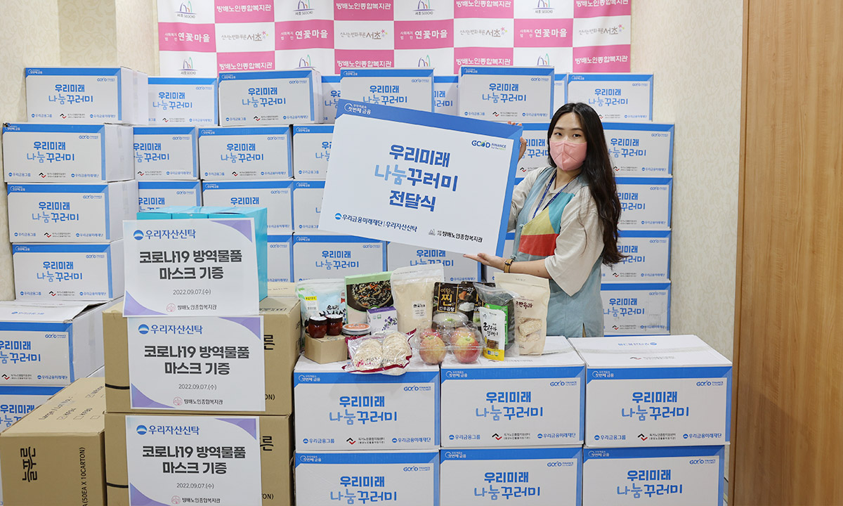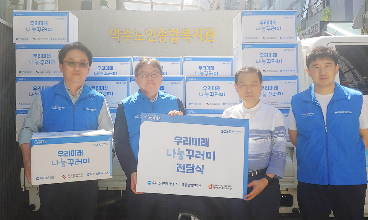 우리금융그룹 15개 전 계열사 CEO들도 같은 마음을 이었다. 서울 소재 복지관에 방문해 ‘우리미래 나눔꾸러미’를 전달한 것이다. 온정이 듬뿍 담긴 우리미래 나눔꾸러미 덕분에 우리 이웃들은 풍요로운 추석을 보낼 수 있었다.