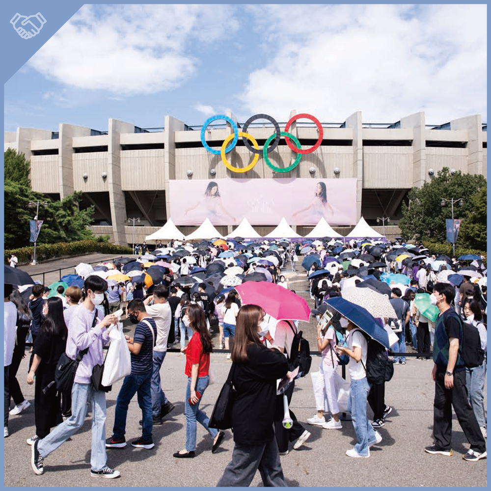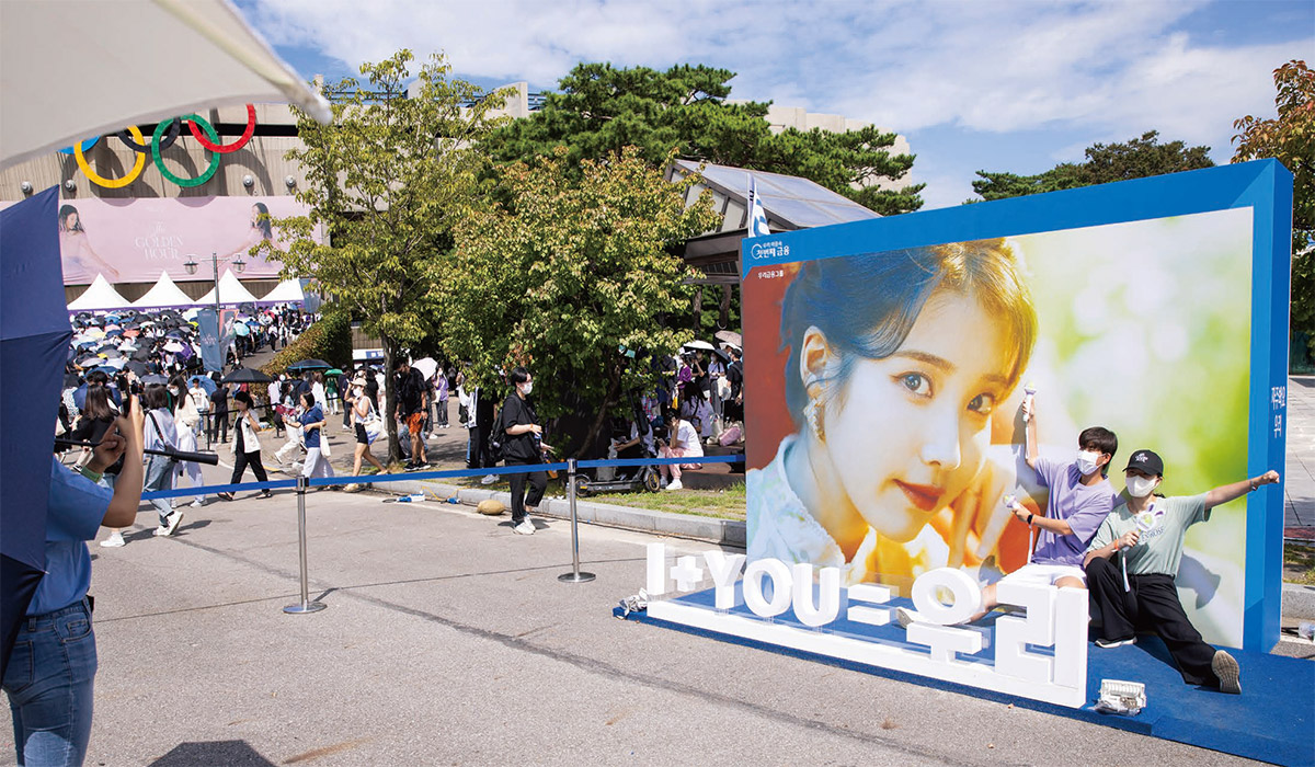 청명한 가을날, 서울 송파구 잠실종합운동장 올림픽주경기장 주변에 인파가 가득 찼다. 라일락 컬러의 의상을 맞춰 입은 이들부터 아이유 굿즈를 손에 쥔 어린아이, 삼삼오오 모인 외국인까지, 활기 넘치는 풍경이다. 9월 17일과 18일 이틀간 열린 아이유 단독 콘서트가 진행된 현장이다.