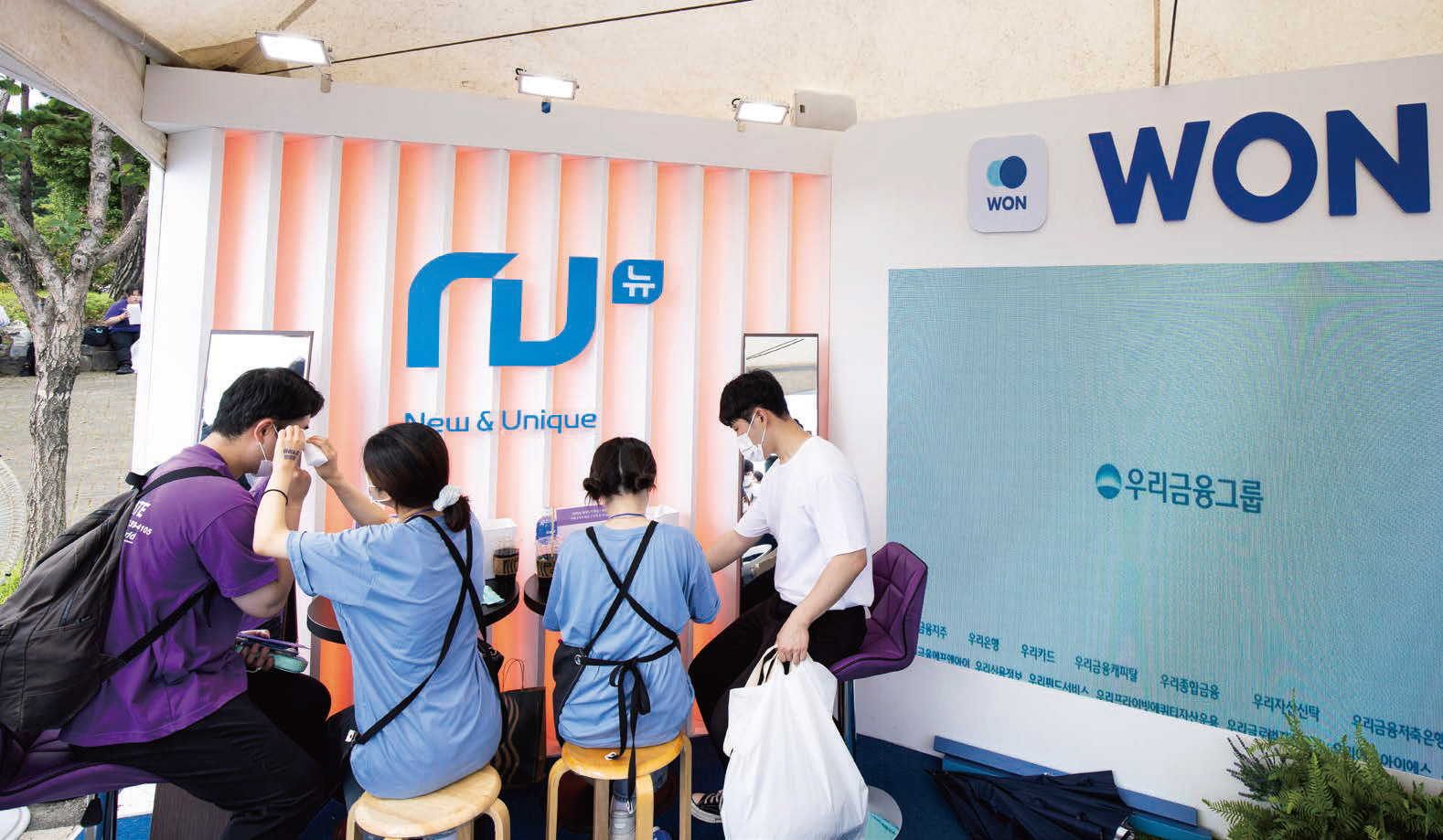인증 이벤트에도 많은 이들이 참여했다. 우리카드 유튜브의 구독과 좋아요를 인증하면 즉석에서 촬영한 사진을 인화해주는 영수증 사진 이벤트가 많은 인기를 끌었다. 또한 우리WON카드 앱 로그인을 인증하면 깎아유 헤어디자이너가 타투 스타일링을 해주는 이벤트에도 많은 이들이 참여했다. 관람객들은 한쪽에 마련된 ‘I + YOU=우리’ 포토존에서 인증샷을 촬영하는 시간도 즐겼다. 한편 우리은행은 굿즈 판매 부스 가까이에 이동형 창구를 운영해 팬들이 편리하게 금융 서비스를 이용할 수 있도록 도왔다. 관람객들은 제공받은 스티커를 가방이나 휴대폰에 부착하는가 하면 인증샷을 남기는 등 저마다의 방식으로 이벤트를 즐겼다.