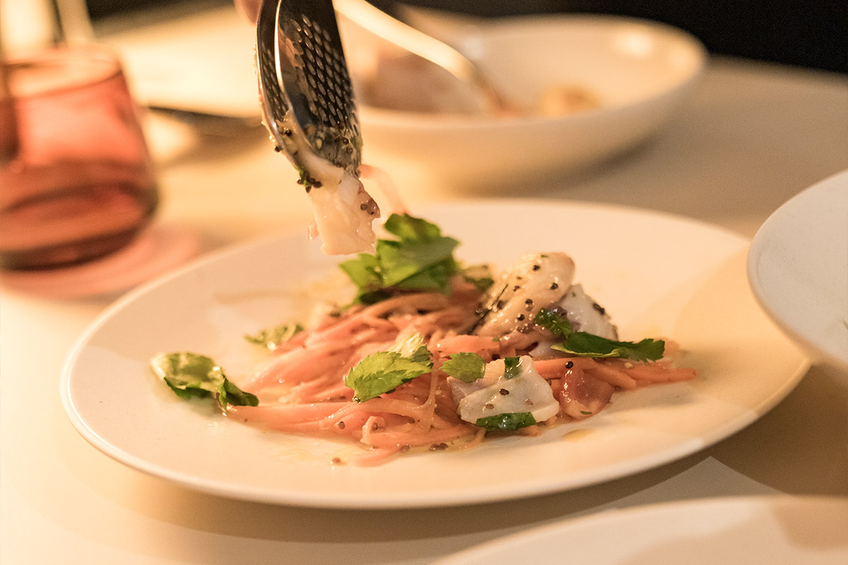 “여기는 바질닭백숙이 시그니처인데 피문어세비체도 맛있어. 와인이랑 잘 어울리더라고.” “그럼 그거랑, 강원뇨끼 어때?” “좋아!”