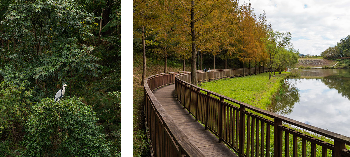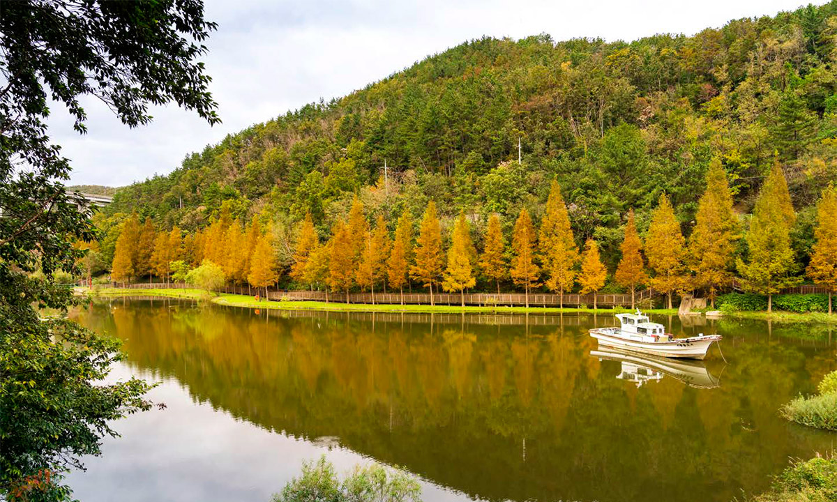 숲은 계절을 가장 진솔하게 기록한다. 그 안에서 철 따라 부지런히 옷을 갈아입는 나무는 가장 자연스럽고 고귀한 ‘작품’으로 자리한다. 기장군에 자리한 용소웰빙공원 또한 한껏 가을 색채로 물들었다. 농업용수로 사용되던 용소골 저수지와 그 주변을 자연생태공간으로 탈바꿈한 곳으로 걷기 좋게 단장되어 있다. 아담한 저수지에 빙 둘러진 나무 데크 길을 따라 느긋하게 산책할 수 있다. 다양한 수종의 나무들이 붉게 물든 자태와 다양한 수생식물이 자리한 습지를 가만가만 둘러보는 소박한 즐거움을 누린다. 짧은 출렁다리 구간을 지나면 길이 양쪽으로 갈라지는데 메타세쿼이아 나무가 즐비한 길과 산 방향의 흙길로 나뉜다. 어느 쪽이든 자신만의 방식으로 산책을 즐기면 그만이다.