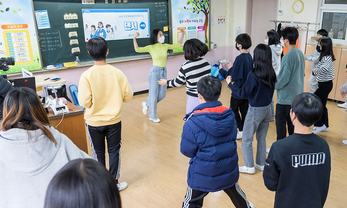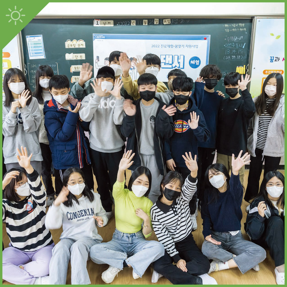 “어렸을 때부터 댄스를 좋아했어요. 관심이 많았거든요. 하지만 평소에는 제 꿈을 어떻게 실현해야 될지 잘 몰랐는데 고맙게도 선생님들이 찾아와 주셨어요. 말로 듣기만 하는 것보다 체험을 하는 게 더 재밌었던 것 같아요. 감사합니다.”
