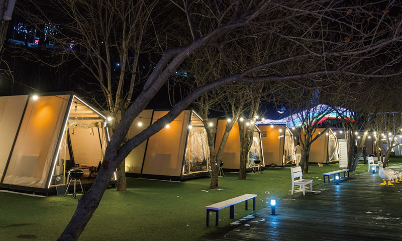 찾으면 다양한 산타 조형물이 어린아이들을 반겨준다. 그뿐만 아니다. 주변의 글램핑, 바비큐장, 짚라인 등의 다양한 부대시설은 남녀노소 모두에게 즐거운 시간을 선물한다.