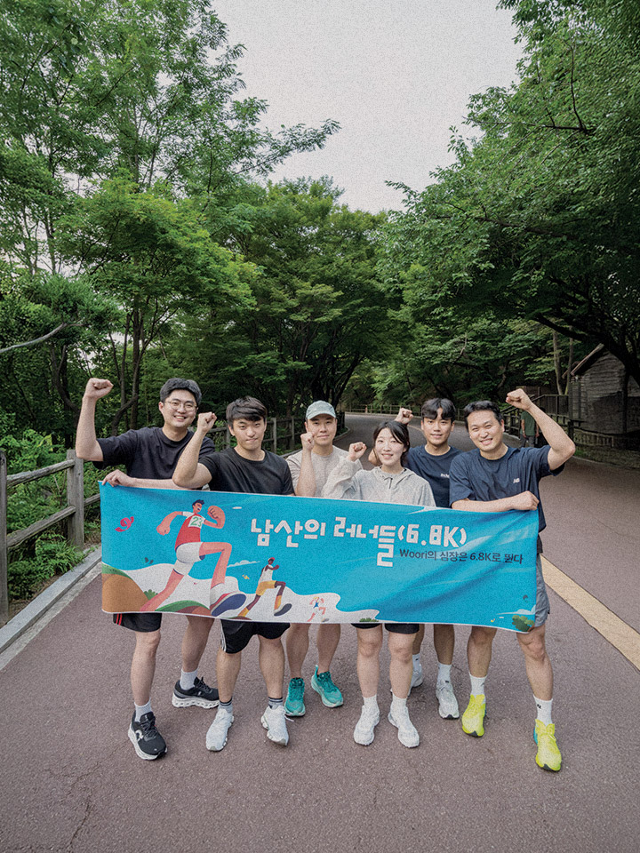 러닝을 취미로 하는 러너들이 많아지고 있다. 달릴수록 상쾌해지는 기분을 뜻하는 ‘러너스 하이’라는 말이 생겨날 정도로 말이다. 러너스 하이, 이 짜릿한 기분을 매주 수요일마다 느끼는 사람들이 우리은행에도 있다. 그 주인공은 행내 러닝크루 ‘남산의 러너들 6.8k’다.