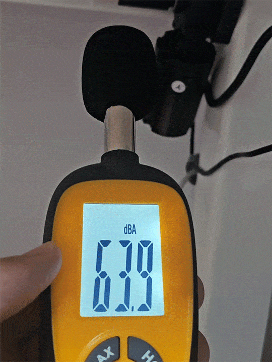 상판에 물건이 올라간 상태에서도 사무실 소음인 64dB 수준의 모터 소음이 나왔습니다. 설명서에는 45dB인데, 측정법이 다소 다른 듯 해요.
